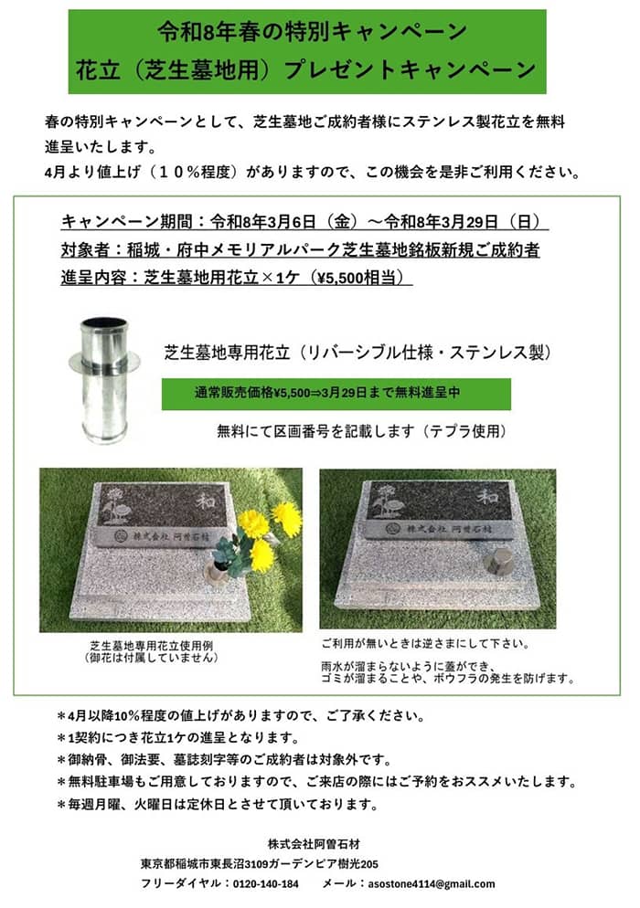 公営 稲城・府中メモリアルパークのご用命は(株)阿曽石材まで。